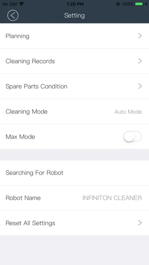 Esta aplicación permite controlar el robot de limpieza Infiniton Cleaner 1080