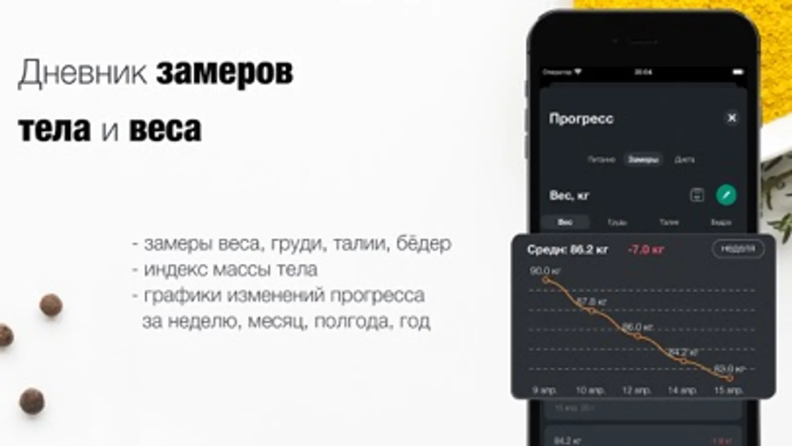 - большая база продуктов питания с энергетической ценностью (более 78 тысяч наименований) с возможностью добавления своих продуктов