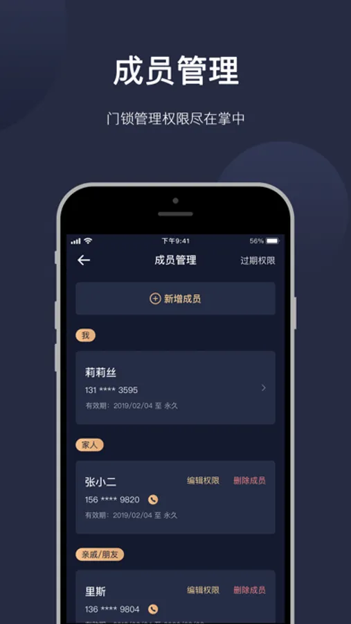 - 再也不用把钥匙交给别人,门锁管理权限,尽在掌中!