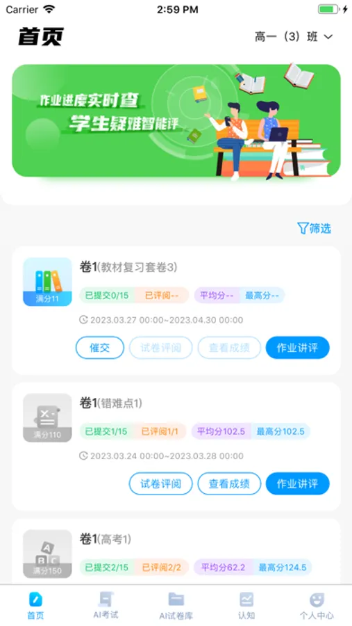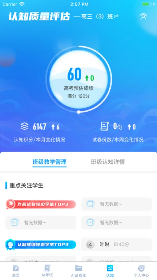 系统可以按照中(高)考的考试要求,实时评估班级和学生的认知质量指数变化,包括此次学习活动后的认知进步指数以及词汇、语法、语言能力等分项的认知指数变化、薄弱知识点等,为教师制作试卷提供个性化学习依据。