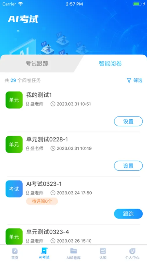 蓝鸽“AI一体化英语考试辅导系统”主要包括AI考辅、AI考试、AI试卷库、AI认知四个子系统。