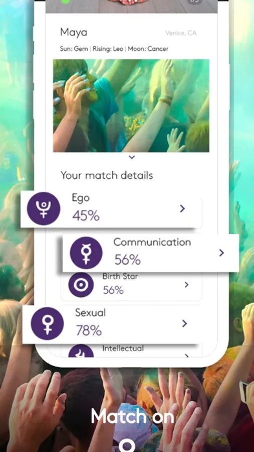 Kismet simplifies dating by blending ANCIENT ASTROLOGY with MODERN TECHNOLOGY through a unique algorithm based on eight dimensions of compatibility & a scoring system of up to 36 points. The higher your score, the deeper your connection.