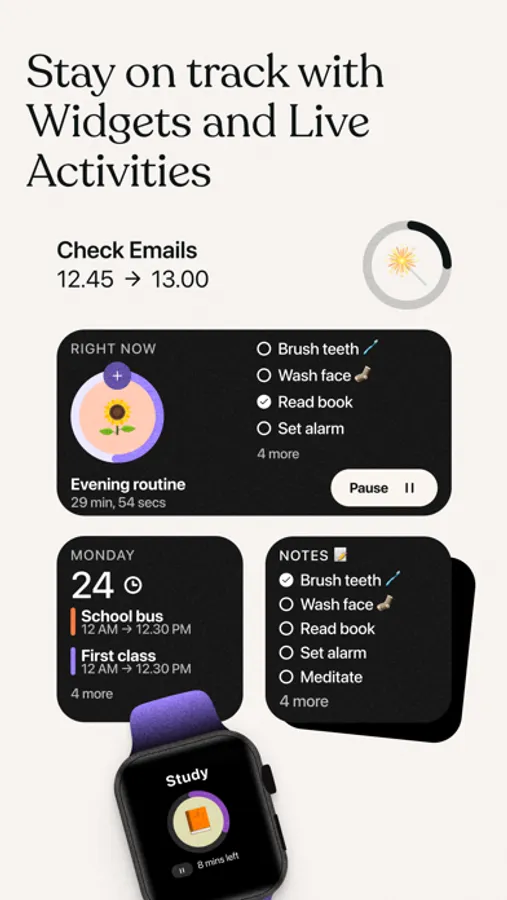 - A burst of personalization with over 3000 colors, emojis, custom icons, and sounds to truly make Tiimo a reflection of you