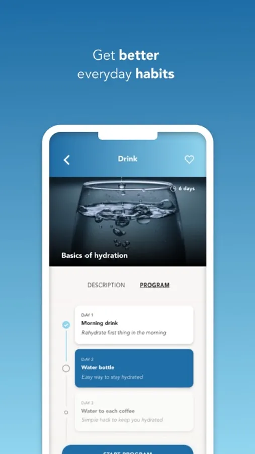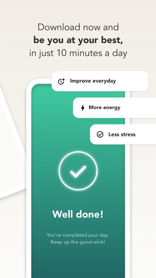 Using short daily exercises and sessions, Aio helps you to improve your habits in the following areas, which in turn all help to strengthen your health and well-being: Breathe, Drink, Sleep, Mind, Move, and Eat