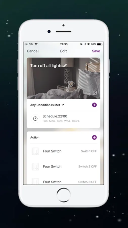 smart-switch smart-home1. Remote control: control home appliances anywhere2. Simultaneously control: control multiple devices with one app3. Timer: set timer to perform multiple functions 4. Device sharing: one tap to share devices with family members5. Easy connection: easily and quickly connect app to devices