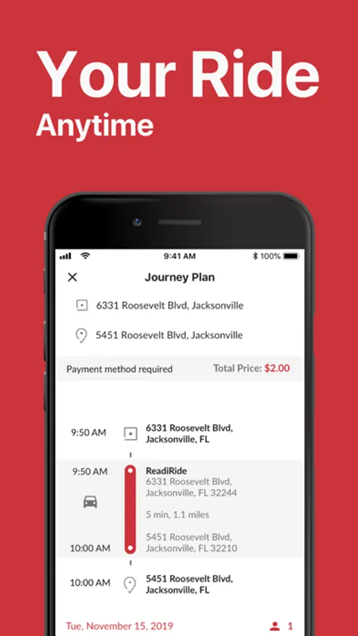 With the JTA ReadiRide app, you can easily plan, book and pay for your ReadiRide trips with just a few taps. ReadiRide is a service offered by the Jacksonville Transportation Authority (JTA) through Owl Inc., providing affordable, on-call transportation to customers within eight neighborhood zones: Arlington, Beaches, Highlands, Mandarin, Northside, Southeast, Southside and Southwest.