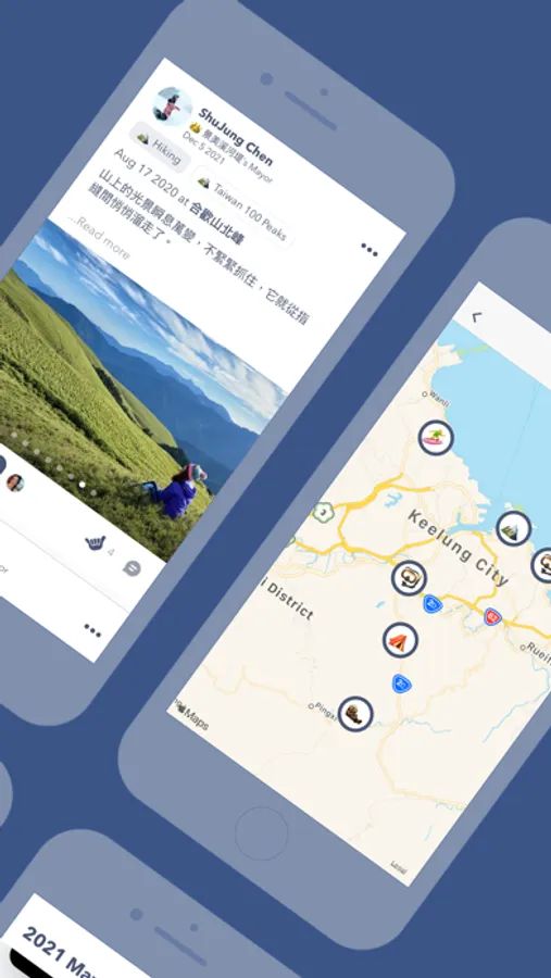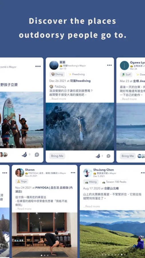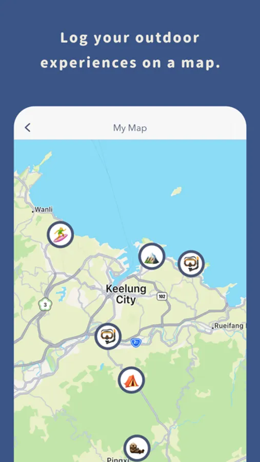 - Outdoor map diary: collect surf spots, dive spots, waterfalls, mountains that you've been to. Create your own outdoor map.