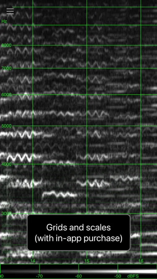The Pro in-app purchase adds grids and scales for time, frequency, and amplitude, as well as a spectrum view and a tap-to-measure function. This expands Spectrolite into an audio measurement tool that you can use to measure frequencies, musical pitches, amplitudes, and durations.
