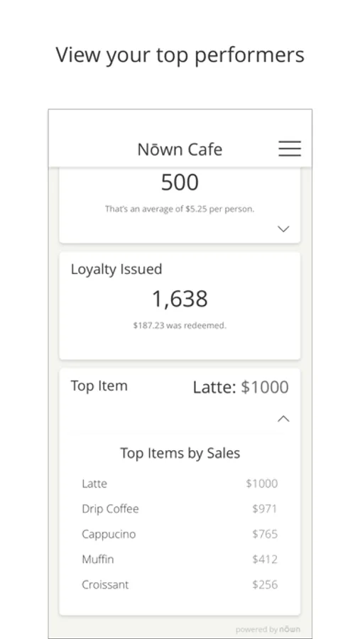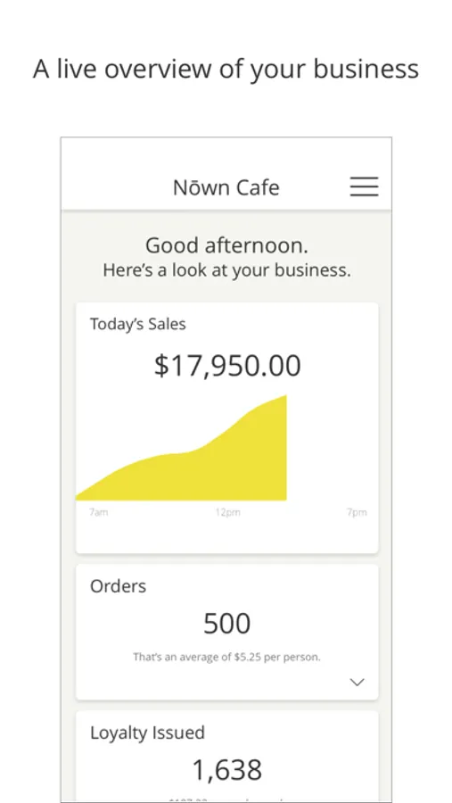 Nōwn Dash gives you a live look at your business’ performance, including: