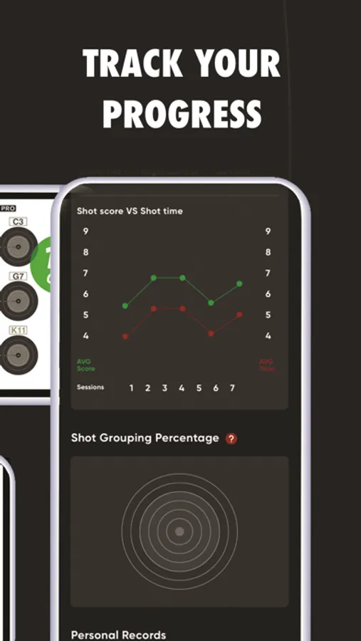 The history section provides screenshots, shooting metrics, and graphs for the user to track their progress. This includes average score, average range, total shots and total sessions. The information is presented on a histogram and a pie chart. This information is saved in an archive.
