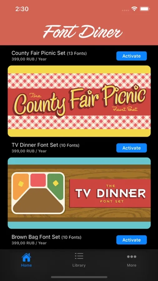 Now you can enjoy our complete Font Diner Font Sets on your iOS device with our spiffy new app for iOS.
