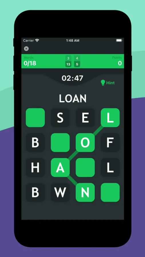 - if you get stuck just tap on hint