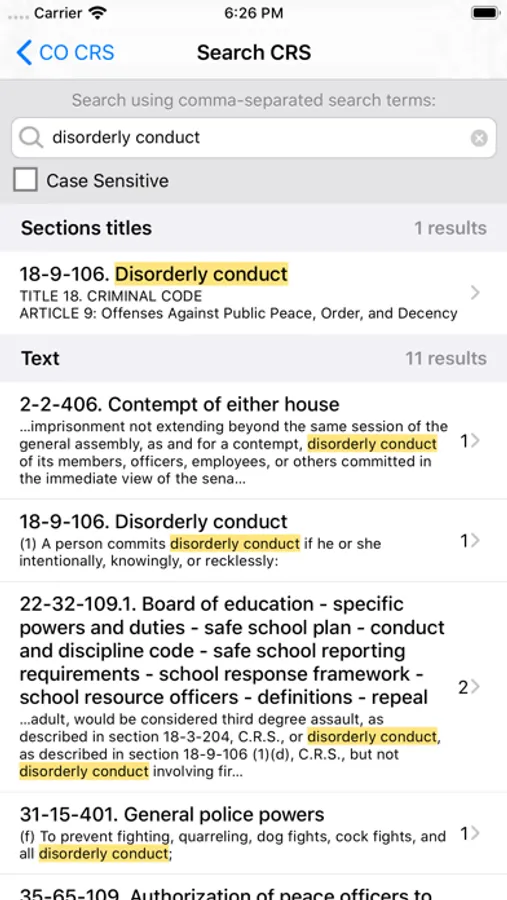 This application is an officially-sanctioned publication using the official text of the Colorado Revised Statutes (current as of August 2019).