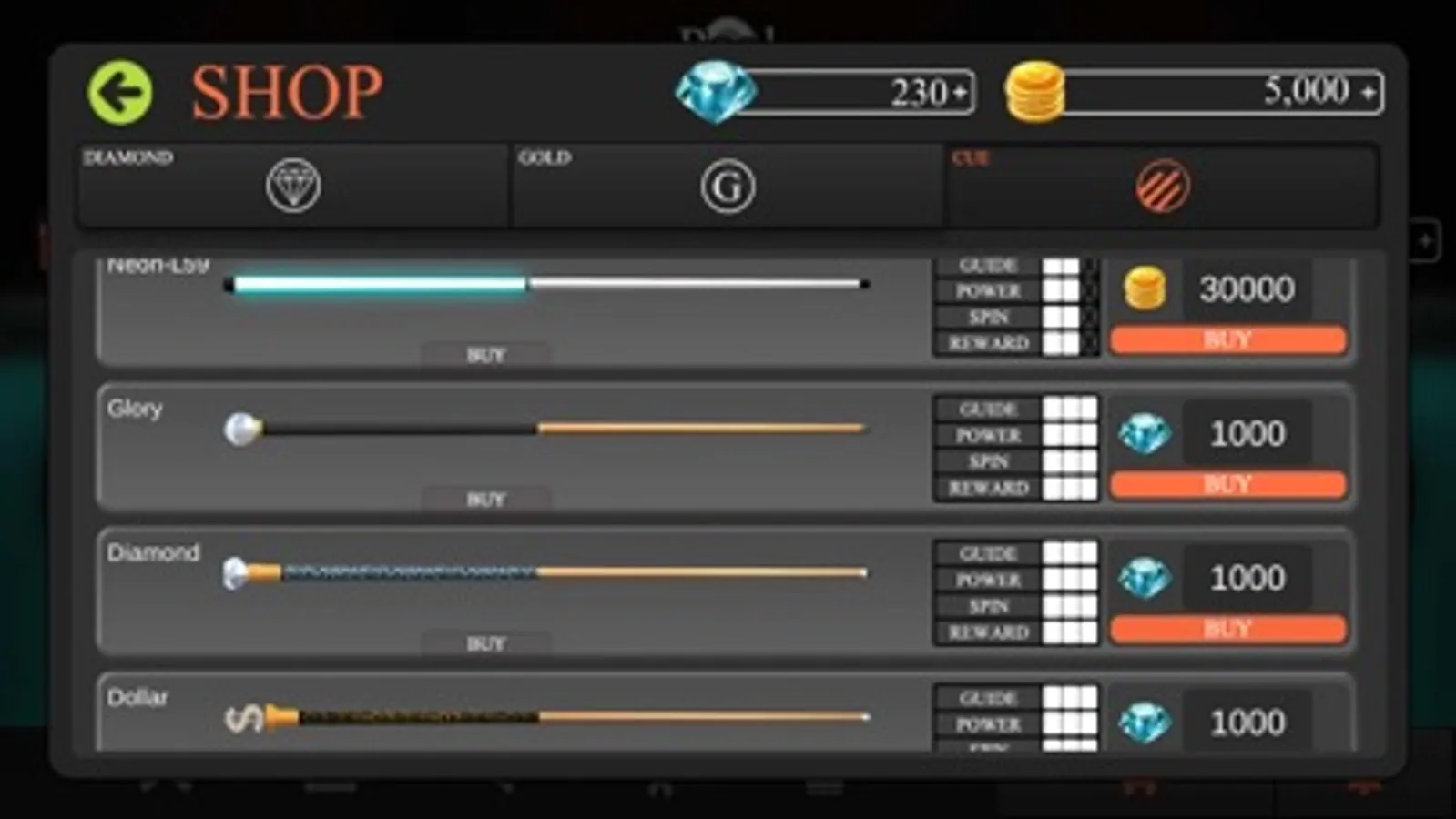 - You can change the different shapes of cue sticks or increase the ability of the them.