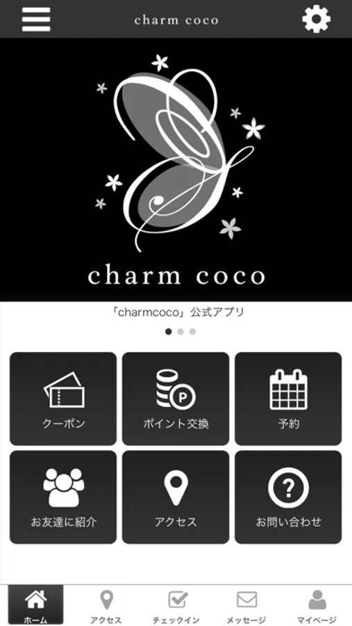 このアプリでは、charmcocoの最新情報の受け取りや便利な機能を使う事ができます。