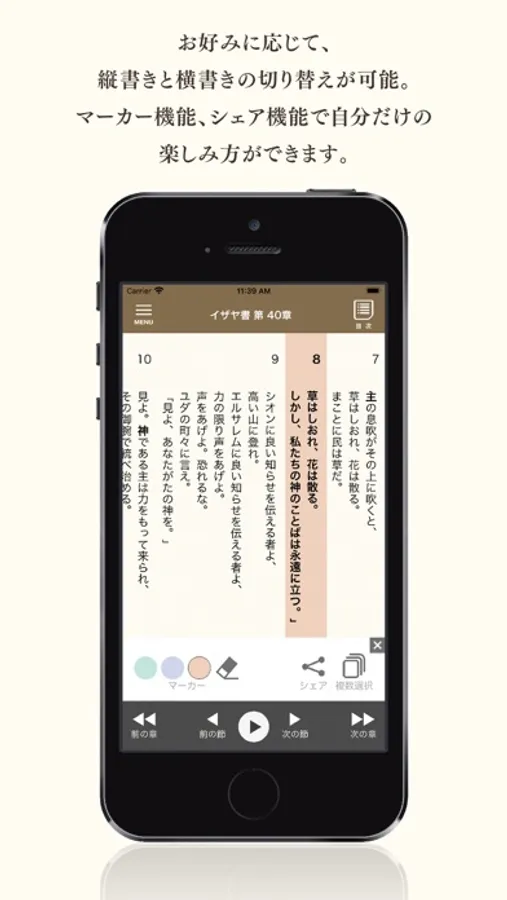 ■西洋文学や歴史、文化に大きな影響を与えた聖書を、アプリとして気軽に持ち歩くことができます。