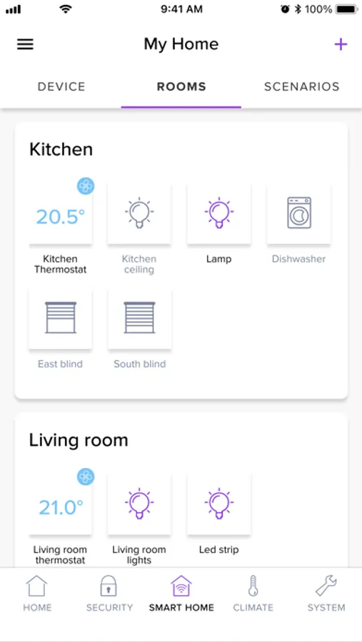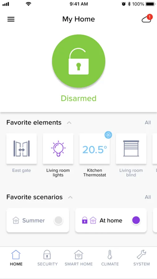 But that is not all: with InimHome, by taking advantage of the potential of the INIM Cloud, you can receive push notifications regarding alarms, faults, arm/disarm operations and the connection status. There is also the possibility to create 'Sections' (e.g. Lights, Sockets, Shutters) and within each section create one or more 'Output Groups' (e.g. in the Shutters section you could have the 'First Floor' and 'Second Floor'; in the Lights section you could have the lights belonging to the various rooms such as the 'Kitchen','Bedroom', etc.). The activations can be controlled either all together or one at a time by entering the group.