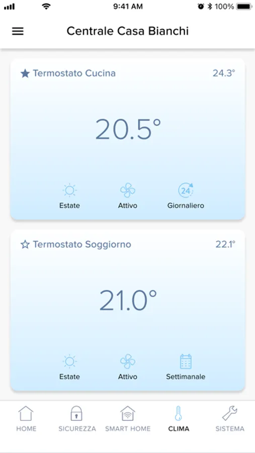 The InimHome App provides remote control via smartphone of SmartLiving, Prime and Sol systems made by Inim™ Electronics. You can remotely control your home and office by issuing intrusion and home-automation commands conveniently from your mobile device, anytime, anywhere. InimHome supports all display sizes and provides an interface with intuitive icons that facilitate operations. The array of functions is complete: with just a few taps you can arm, disarm or partly disarm the intrusion alarm system, access scenarios, check the status of detectors, outputs and any system faults, read the events log; you can also activate air conditioners, sprinklers, lights and much more. Through InimHome it is possible to control multiple SmartLiving, Prime and Sol systems: thanks to the multi-panel management function you can interact with numerous systems, without limits. In this way you can control all of your systems in a collective way (home, office, business premises and so forth). InimHome also offers the chronothermostat function which allows you to adjust the temperature of the different ambients. Interaction with cameras is also possible and permits video verification in real-time: InimHome allows you to associate one or more cameras to a zone and display on the smartphone the real-time video of the cameras activated in the event of an alarm in the zone. If cameras with ONVIF standard are used it is possible to manage the camera movements and zoom outs as well as view multiple cameras simultaneously.
