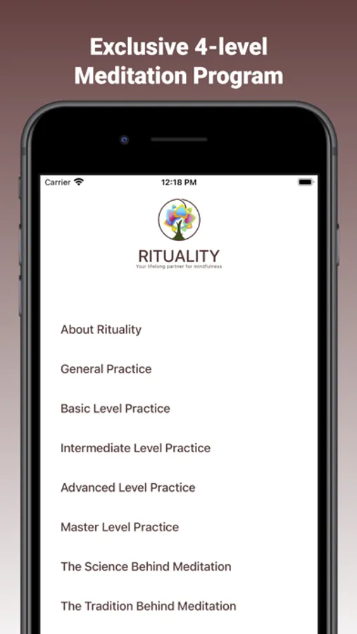 Join millions of people meditating worldwide and start your journey to a healthier, happier and more meaningful life. Bring your meditation to another level by developing your full potential with our unique 4-level structure. RITUALITY is built on hundreds of years of traditional wisdom combined with knowledge from the modern scientific approach.