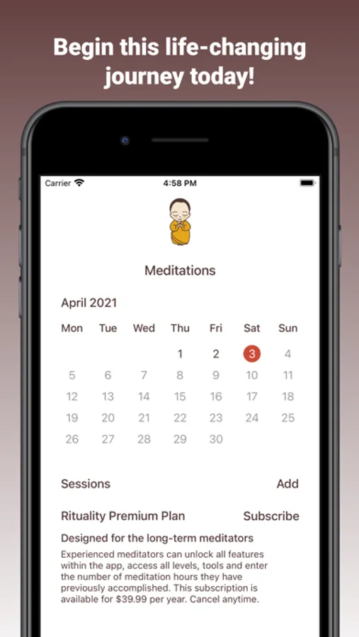 For daily meditators, a subscription is required after 7 consecutive days of application use. Subscription is just $0.99 per week.