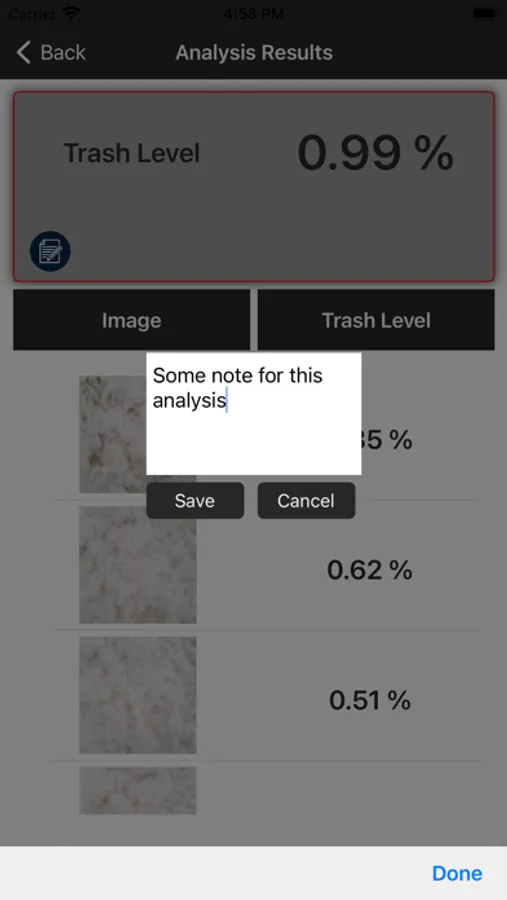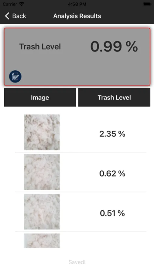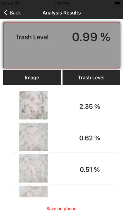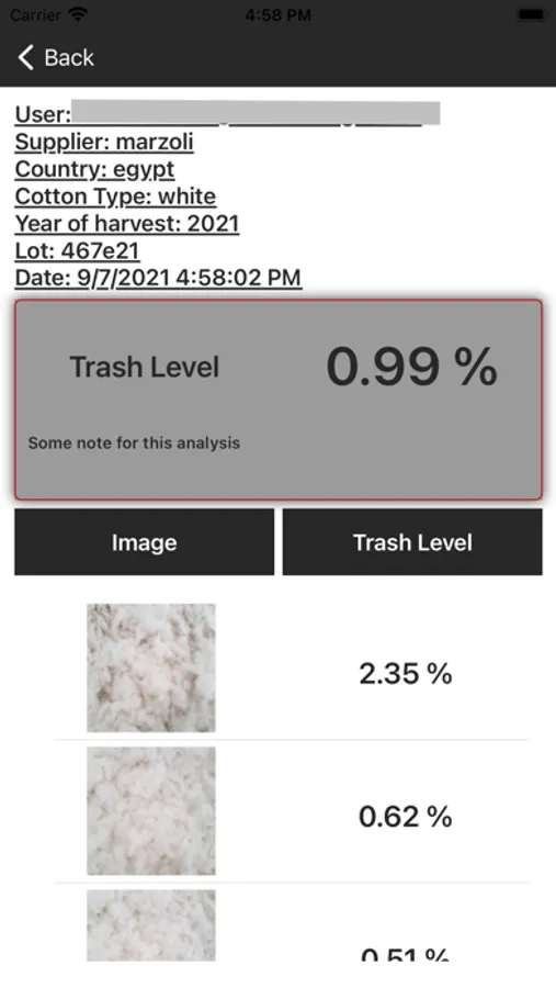 The application use photos of the cotton bales to calculate trash level with AI technology. The application permits to collect a large number of samples, in order to improve the accuracy and have a global situation of the material.