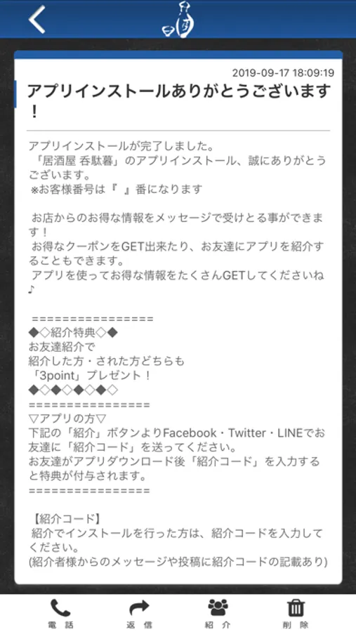 呑駄暮のアプリをSNSを通じてお友達に紹介する事ができます。