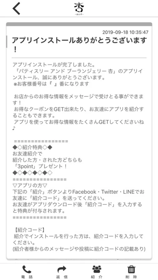 あんずのアプリをSNSを通じてお友達に紹介する事ができます。
