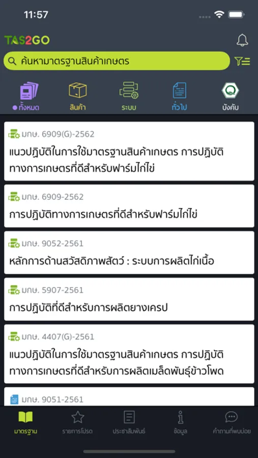 This application offers a collection of Thai Agricultural Standards, divided into categories according to the types of standards. You can search and save your favorites. This application also provides the information related to the Thai Agricultural Standards interested.
