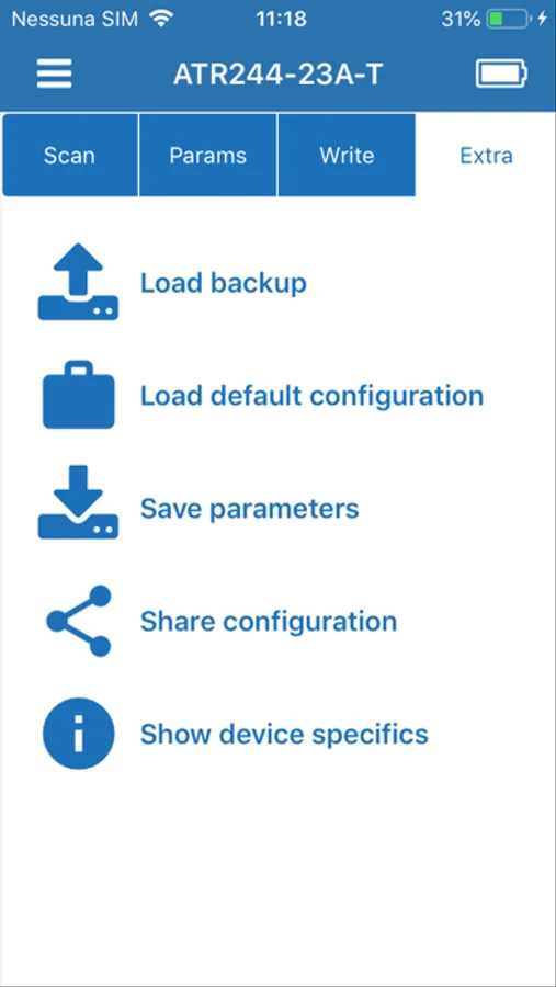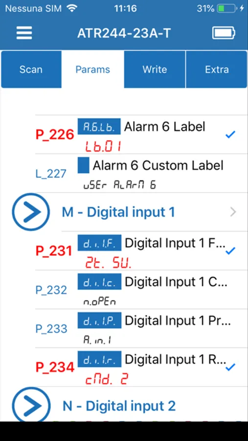 Each group can be expanded in a list and contains the values that regulate the functioning of your Pixsys instrument. Touch any row to edit the corresponding parameter, and once done, write the new configuration your device.