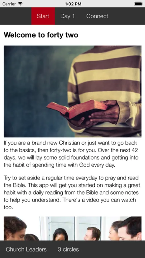 Forty-two is for new Christians to start growing in their relationship with God. There are daily Bible readings and notes to help you get started and a chat facility to chat with your discipleship group.