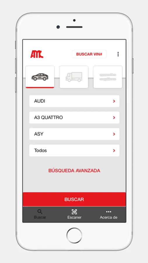 Otra de las facilidades que presenta la app es la posibilidad de realizar una búsqueda personalizada a partir del VIN (número de bastidor), enviando el código directamente al equipo técnico de AMC a través de la propia app.