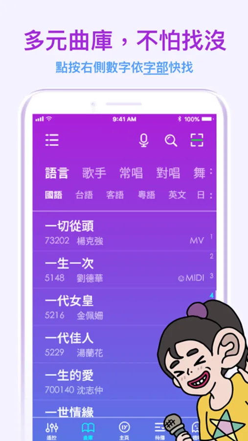 3. 語言、對唱、懷舊、情境、舞曲、節奏.. 精選分類曲庫,不怕找不到歌唱。