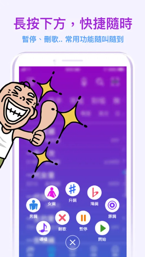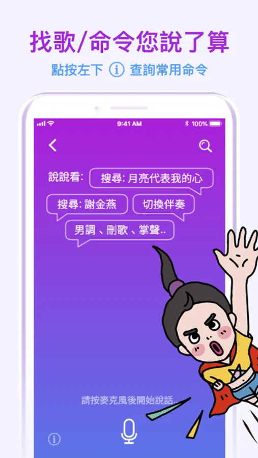 2. 支援 "語音" 快速找歌,刪歌、升/降調、切換伴奏.. 您"說"了算。