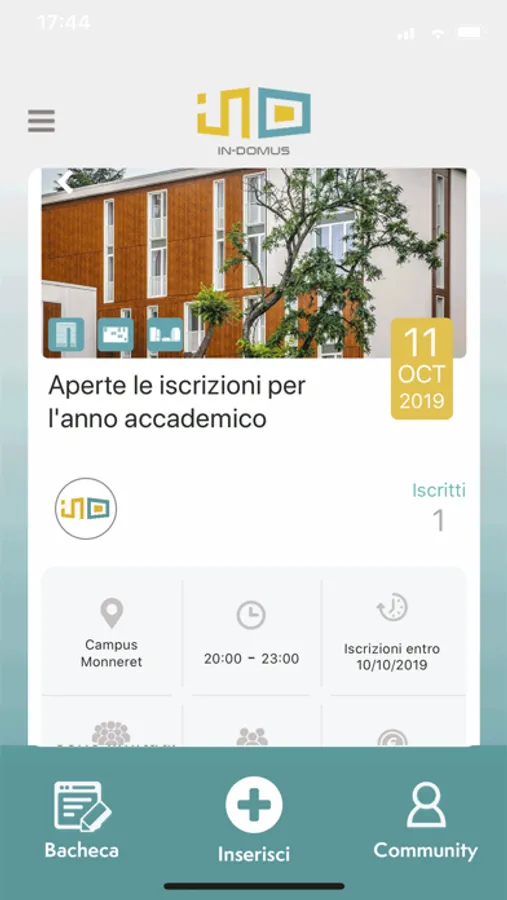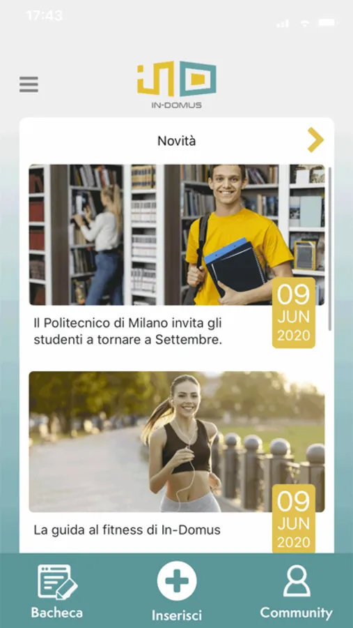 Con l'app di in-domus tutti i nostri residenti potranno restare aggiornati sulle novità, prenotare aule e attività, segnalare problemi e restare connesso con la community.