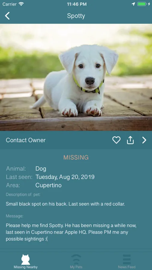 The ability to chat with other missing pet app users within your location base could be crucial in helping you to track down your absent companion. Receive real-time sightings with descriptions and photographs from other users, allowing you to chase up potential leads or eliminate false ones, saving precious time.
