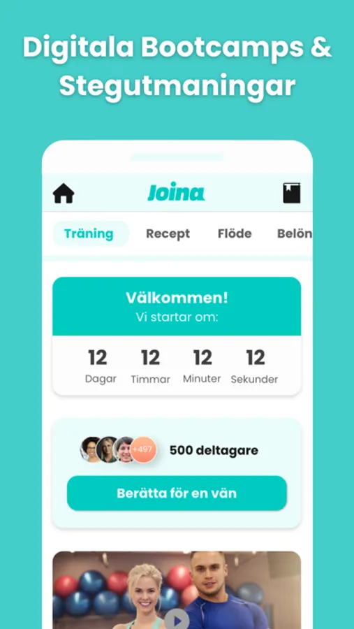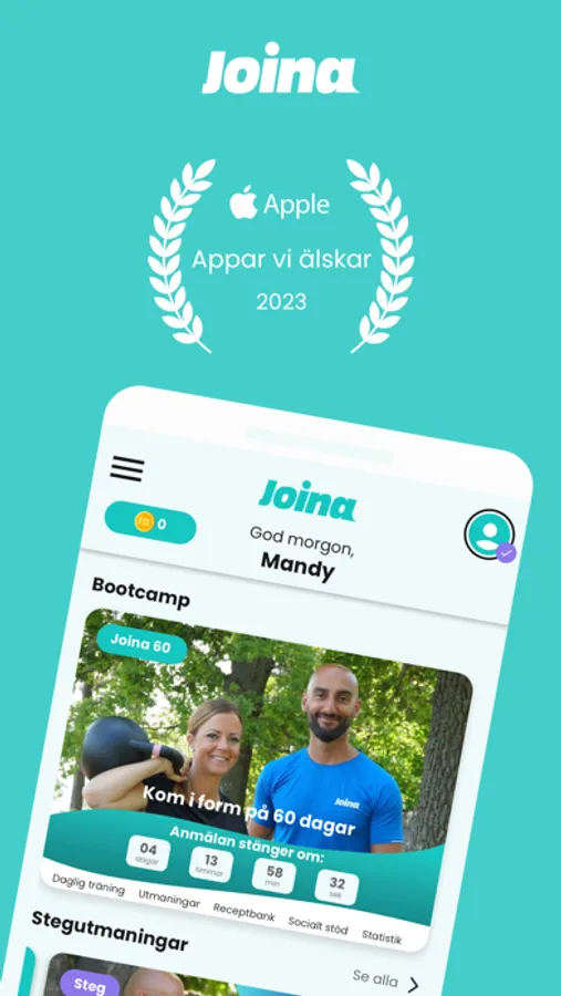• Joina Bootcamp 60 - Ett digitalt kost- och träningsprogram. I 60 dagar får du allt du behöver för att göra en förändring och få tydliga resultat. Träningspass, recept bank, checklista, dagbok, statistik. All träning kan utföras från var som helst och passar alla nivåer. Fokus ligger på motivation och enkelhet.
