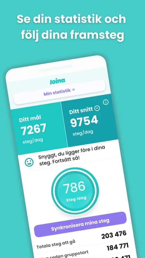 • Synka med din aktivitetsmätare och nå ditt dagliga stegmål – Joina är kompatibel med Apple Health, Google Fitness, Apple Watch, Fitbit, Garmin, Suunto och Polar.