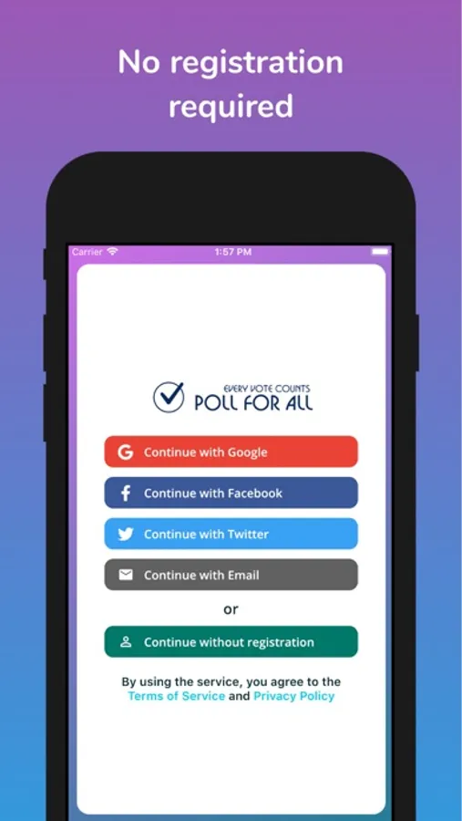 Sharing - Invite your friends to vote via your favorite messenger, social networks, email or by showing and scanning poll's QR-code. There is no need to have the app installed for voting!