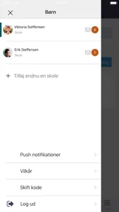 By clicking on the upper left corner you get to the menu for the app, and this is also where you will be able to switch between your children.
