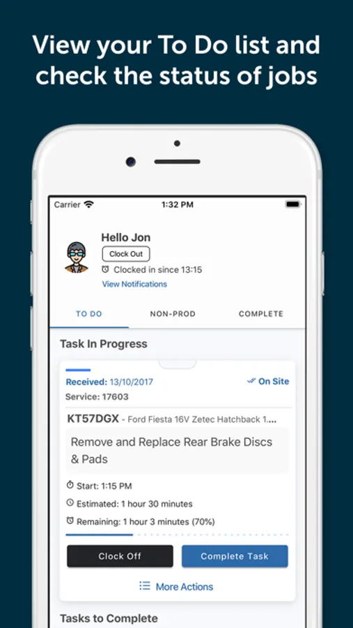 Paper Job Cards are a thing of the past! With the Workshop app, your Technicians will be able to see exactly what they need to be working on and in which order. It will allow them to clock on and off of the service task and update with any notes that may be needed. The app also includes clocking in and out of the workplace.