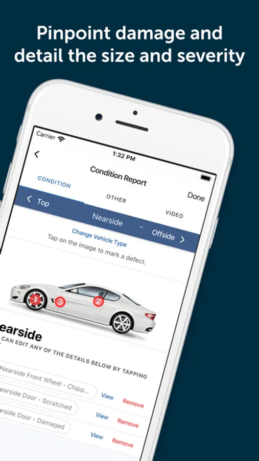 Condition Reports allow you to move around a vehicle and pinpoint any defects a vehicle may have, noting the size, severity, cost, etc - you can also add images and video. This is a great tool to use as it provides evidence of a vehicle's condition before being moved into the workshop.