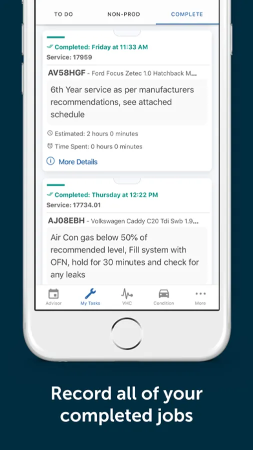 Allow your Technicians to undertake custom made VHCs, including images of any defects found and the ability to record and send the customer a video explaining the issues they have found - a guaranteed way to increase and upsell service work.