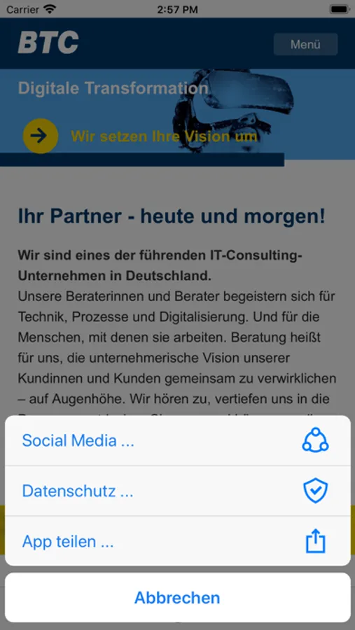 Wer wir sind: Als eines der führenden IT-Beratungsunternehmen in Deutschland verstehen wir uns als Wegbereiter und Treiber neuer Themen und Technologien in der IT-Branche. Maßgeblich für unseren und auch für den Erfolg unserer Kunden sind dabei unsere Expertinnen und Experten, die leidenschaftlich „digital“ denken und dabei stets auf Augenhöhe beraten.