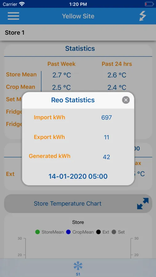 • Statistics showing the store, crop and set mean temperatures over the last 24 hours compared with the last week.