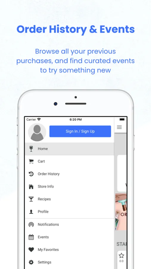With the App you can browse for the wines & spirits available in the store, and also order a delivery or pickup.