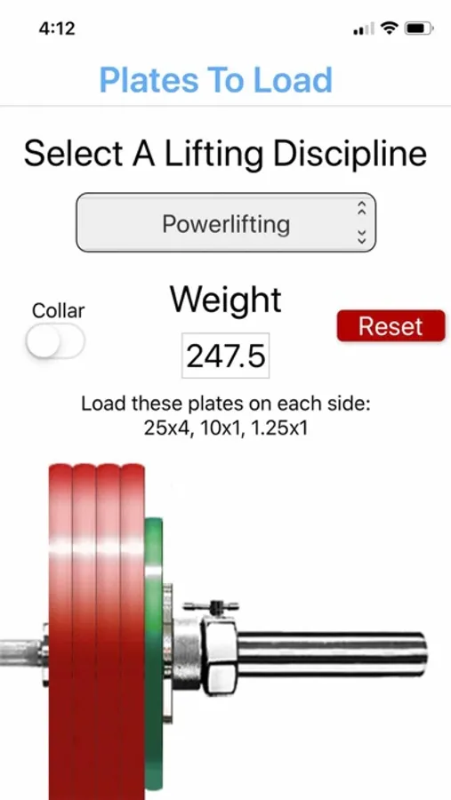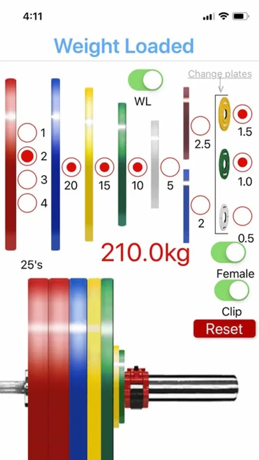 Check to get immediate confirmation that your bar is loaded for the exact weight requested. Avoid those competition or gym mis-loads.