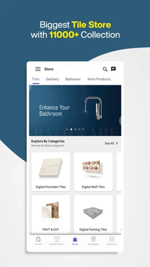 It is the first mobile application developed exclusively for the Tiles and Ceramic sector. The constant improvements by our team of developers to the app has earned us the world's No. 1 Online Tiles & Ceramic Market title in just a few years.