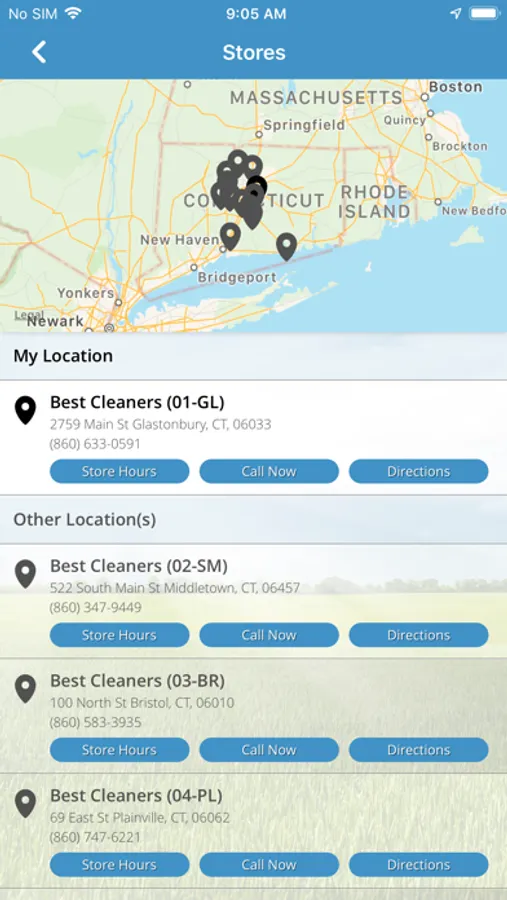 5) Quickly contact Best Cleaners by phone or email and access their website all directly from your device.