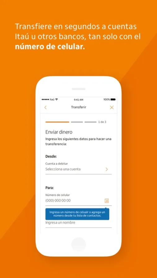 · Realizar transferencias en segundos a productos Itaú u otros bancos.