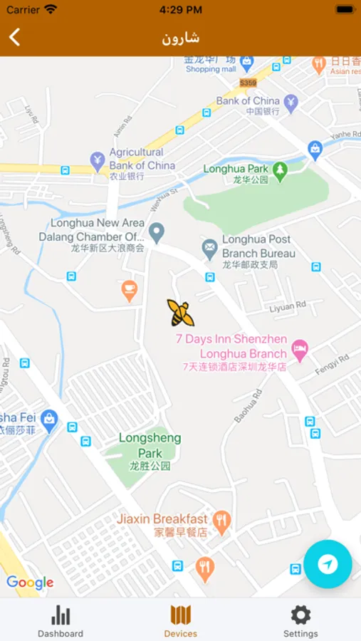 Current device location can be viewed in the app. The app also sends notifications if, for example, device is moving or high/low temperature is detected.